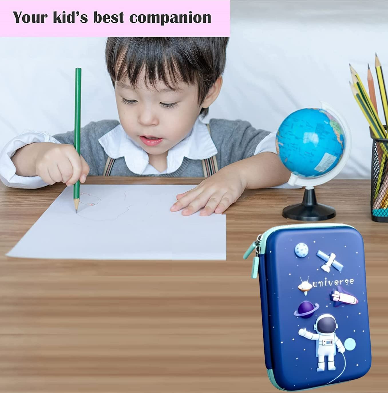 - ✔ EVA MATERIAL & EMBROSSED HARDTOP: This carrying pencil case is made of durable and stylish EVA material, compressive, shockproof, waterproof, all-round protection of stationery. Each of cute pencil case comes with an embossed Space Astronaut pattern on the front that gives a vivid look and make your kid happy.