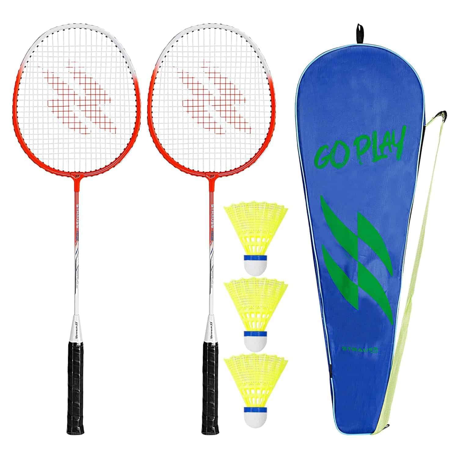Strauss Aluminum Badminton Racket Set of 2 with Cover | Includes 3 Shuttlecock | Lightweight, Durable Racquet for Beginners and Intermediate Players | Ideal for Outdoor and Indoor Play (Multicolor)